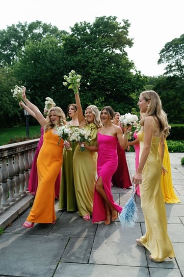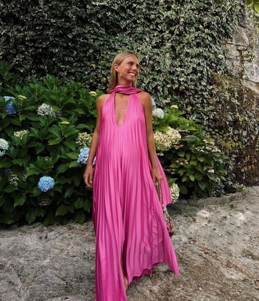 Mujeres: Vestido largo colorido, evitar colores claros que se confundan con blanco